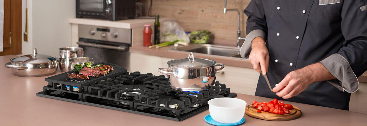 Removable Heavy Cast Iron Grate- Provides stability and supports hot and heavy cookware while remaining easily movable, and easy to clean and maintain, as this will prolong its lifespan and ensure hygienic cooking conditions. And highly responsive anti-melt zinc alloy knobs provide easy burner control, making your cooking process more comfortable.