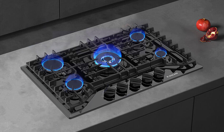 GASLAND 30" 5 Burner Black Enamel Gas Cooktop with Griddle